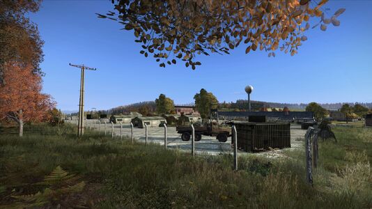 It lies to the east of Kamensk and directly north of Severograd. These barracks are run-down camping-style housing units with a double door entry way being broken open and three larger accomodation quarters. There is also a local lake known as Lake Glubokoe which was used by the local villagers and Chernarussian Defence Forces.
